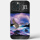 Personnalisez ce coque iphone d'aigle chauve unique "Un d'un genre". Il comprend un aigle à tête blanche majestueux qui survole une rivière éclairée par la lune pendant une tempête de foudre... Entouré de frontières en cuir noir! Design artistique original par l'artiste Kerry Miller.