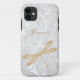 Protégez votre iPhone 11 avec un Coque Gold Dragonfly personnalisé iPhone 11. Le design coque comprend une libellule colorée, une vigne florale blanche douce contre un arrière - plan damassé gris clair avec une zone à personnaliser avec votre nom. Autres cadeaux disponibles avec ce design ainsi qu'une variété de couleurs. Personnalisez-vous ou faites un grand cadeau.