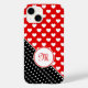 couverture stylisée avec votre monogramme personnalisé, rouge, noir et blanc, motif de pois de coeur
