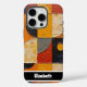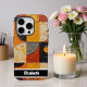 Ce capot de téléphone audacieux présente un style de peinture à l'huile d'impasto très texturé, avec une mosaïque de formes géométriques dans une palette vibrante et contrastée d'oranges, de jaunes, de rouges, de bruns foncés et de gris. Le design artistique et tactile ajoute une touche moderne et colorée à votre appareil. Une barre noire élégante en bas offre la personnalisation avec un nom comme "Elizabeth"; si vous ne voulez pas un nom, vous pouvez le retirer et tous les autres éléments que vous n'aimez pas de l'outil de conception, en créant un véritable accessoire de smartphone sur mesure.