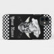 Ajoutez votre nom à cette conception orientée culinaire personnalisable fraîche, comportant un chef de crâne avec le bandana checkered noir et blanc et les couteaux croisés. Disponible dans différents styles, la conception a été créée pour le chef exécutif, le chef sous, le cuisinier de maison, la ligne cuisinier, et n'importe qui avec une passion féroce pour la cuisson. Et crânes. Visitez www.zazzle.com/thechefshoppe pour voir plus de crânes culinaires frais de chef conçus par sdesiata.