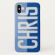 Faites afficher votre choix de nom avec audace sur un étui téléphonique à deux tons. Exemple montre le nom Chris. Personnalisez avec votre choix de nom court.