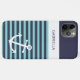 Belle ancre contemporaine de navire, sur un motif classique et chic bleu marine et couleur estivale claire rayures. Avec espace pour personnaliser ou customiser avec le nom, les initiales ou le monogramme de votre choix sur un arrière - plan de couleur blanche. Belle couverture moderne et cool pour le brancheur tendance et amateur d'art branché hip, amoureux de motifs artistiques qui veut protéger leur téléphone de la poussière et de la saleté, de l'usure et de la déchirure. Cette conception est disponible Apple iPhone 6, 7 et 8 Plus, 10 ou X, XR, XS, 11, 12, 13 Mini, 14 Plus et Pro Max coques de téléphone cellulaire. Montrez votre style personnel, regardez à la mode et se sentir élégant avec un design unique sur un appareil mobile accessoire de votre choix.