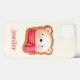 Un étui téléphonique avec un visage d'ours adorable et mignon sur une base de biscuits. Portant un foulard rayé rouge et blanc.