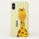 Ce coque iPhone X pour enfants dispose d'une girafe mignonne sur papier carnet jaune et le nom de votre choix.