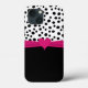 Coque smartphone tendance et mignon pour iPhone conçu avec un symbole de coeur en strass rose imprimé brillant numériquement et faux ruban ainsi que motif pois noir et blanc tendance pour couvrir votre téléphone cellulaire dans le style.