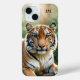 Étui téléphonique avec tableau d'un mignon tigre. Vous pouvez ajouter vos initiales personnalisées (facultatif, vous pouvez également supprimer le modèle). Beau pour un amoureux des animaux et surtout un amoureux des chats.