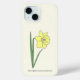 Un étui téléphonique jaune clair avec une illustration de fleur de jonquille botanique en couleurs pastel (Narcissus pseudonarcissus) et un texte personnalisable en bas : idée cadeau parfaite pour une fille qui aime les fleurs. La jonquille est la fleur de naissance de mars, la fleur de Pisces et d'Aries et est symbolique de la renaissance, du pardon, de la créativité, de l'énergie et de la vitalité.