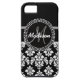 Modèle Damas noir et blanc personnalisé avec monogramme et nom de couleur gris accentuation. Customisez avec votre nom et votre monogramme. Personnaliser votre coque fait un super accessoire de mode. Conception par Elke Clarke © Autres styles et couleurs disponibles sur www.zazzle.com/DamaskGallery
