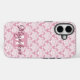 Coques Case-Mate iPhone Damask blanc sur Dusty Rose Monogramme & Nom Joli
