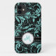 Coques Case-Mate iPhone Damassé bleue et noire d'Aqua avec le monogramme