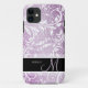 Caisse florale pourpre et blanche de chardon de damassé de motif de l'iPhone 5. Ajoutez votre nom et monogramme.