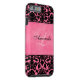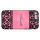 Coques Case-Mate iPhone Damassé noire et rose de monogramme