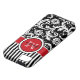 Coques Case-Mate iPhone Damassé rayée blanche noire rouge de monogramme