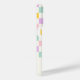 Boîtier de téléphone avec un motif de damier rose clair, jaune, violet et bleu aqua et votre nom dans un style rétro, police violet avec une ligne de texte personnalisé ci-dessous. Toutes les couleurs sont personnalisables.