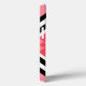 Cette étagère téléphonique est décorée dans un style art déco avec des formes diamant en noir, blanc et rose sur un champ de pastèque.