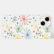 Ce boîtier téléphonique a un design moderne du milieu du siècle des starbursts dans les couleurs rétro.