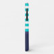 Coque iphone nautique moderne avec motif rayé bleu turquoise et bleu marine et texte personnalisable.