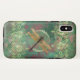 Ce Coque iPhone X est doté d'une libellule dorée sur un arrière - plan vert agrémenté de rhinocéros et de feuilles.