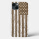 Faux bois texture grain gronge le coque design de drapeau américain pour protéger votre iPhone. Cette conception présente le drapeau des Etats-Unis d'Amérique (USA) en étoiles et rayures en blanc qui montrent la fissuration du grain de bois et la texture ci-dessous.