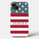 Boîtier téléphonique patriotique américain avec les étoiles et les bandes en rouge, blanc et bleu, personnalisez en ajoutant votre nom.