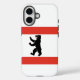 i Phone 14 Coque avec drapeau de Berlin, drapeau d'état avec bandes horizontales de rouge et blanc, avec une illustration d'un ours noir au centre