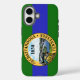iPhone 16 Coque avec le drapeau de Chattanooga, Tennessee. Un drapeau vert et bleu avec le sceau de la ville au centre