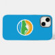 iPhone 14 Coque avec un design avec le drapeau de Provo, Utah. Un drapeau bleu avec le logo de Provo City au centre. Le logo représente le lac de l'Utah et les sommets de montagne avoisinants avec le soleil levant en arrière - plan