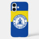 iPhone 13 Coque avec le drapeau de Riverside, Californie. Un drapeau jaune et bleu avec le sceau de la ville au centre