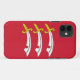iPhone 7 Coque avec design avec un drapeau du comté historique d'Essex, en Angleterre, Grande-Bretagne; drapeau rouge avec trois épées saxonnes blanches, dorées (Seax)