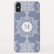Ce boîtier de téléphone de Noël présente un joli design motif de flocon de neige avec monogramme sur un arrière - plan bleu poussiéreux. Personnalisez-le avec une initiale.