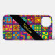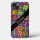 Personnalisez ce boîtier de téléphone portable animé et coloré contenant des blocs de courtepointe traditionnels dessinés à la main dans des couleurs vives et joyeuses avec votre nom.