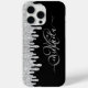 Éclairage brillant argent gris et noir Monogram iPhone 15 Coques. Personnalisez les accessoires girly avec votre nom et votre initiale. Le gris argenté clair dégoulinant fausse parties scintillant scintille sur le noir. Nous utilisons des photos d'étincelles. Veuillez noter que c'est une photo de parties scintillant !