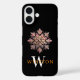 Coques Case-Mate iPhone Élégance du flocon rose brillant Monogramme noir