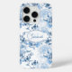 Coques Case-Mate iPhone Élégant bleu gravé Nom floral / Monogramme