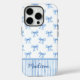 Coques Case-Mate iPhone Elégant coquette bleu arc rayé toile monogramme