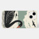Protégez votre téléphone avec style grâce à cet élégant coque iPhone 14 doté d'un majestueux cygne noir avec des plumes détaillées et un bec rouge-orange. La scène sereine avec des roseaux et des cygnes lointains est rendue dans une palette muette et vintage, parfaite pour les amateurs de design intemporel et sophistiqué.