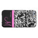 Coques Case-Mate iPhone Élégant Damas noir et blanc avec monogramme rose