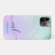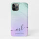 Superbe coque iphone personnalisé avec un marbre parties scintillant vert imitation menthe, une texture pastel violet et une police de calligraphie élégante. Personnalisez le produit avec vos initiales et votre nom.