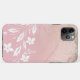 Joli design coque iphone personnalisé avec texture fausse rose en cuivre parties scintillant or, belles fleurs blanches, rose pastel arrière - plan et élégante police calligraphie. Personnalisez le produit avec votre nom ou tout autre texte.