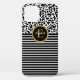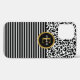 Un motif léopard noir et blanc rayé noir et blanc et un monogramme d'or et de noir élégant orne ce coque iphone. Personnalisez-le pour vous-même ou pour un cadeau ! Conçu pour vous par Blackberry Boulevard.