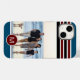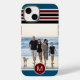 Coque photo monogramme rayé avec bandes bleu et rouge foncé. La couleur des bandes et du cercle monogrammé peut être changée.