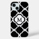 Monogramme noir et blanc Quatrefoil Motif iPhone 15 Coque