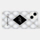Un design élégant et chic avec un luxueux arrière - plan tufté blanc avec divets or et un diamant noir avec votre monogramme et nom en élégante typographie de script. Faites une déclaration avec ce coque iphone minimaliste noir et blanc.