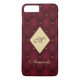 Un design élégant et chic avec un luxueux arrière - plan tufté rouge foncé avec divets or et un diamant d'or avec votre monogramme et nom en élégante typographie de script. Faites une déclaration avec ce minimaliste coque iphone rouge et or.