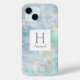 Un coque iPhone 15 monogramme élégant et girly avec un joli motif d'aquarelle d'inspiration opale et l'initiale et le nom de votre choix. Une couverture iPhone monogrammée unique.