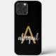 Customisé monogrammed simple nom de script et initial moderne et élégant élégant noir et or girly Ajouter votre nom iPhone 13 Pro Max Coque tendance sont personnalisés et parfaits pour Sweet 16, 13e, 21e, 30e, 40e, 50e, 60e, 70e, Anniversaire, Mariage, Quinceanera, Fête des mariées, fête d'achelorette, anniversaire ou nouveau conducteur