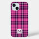 Élégant Monogramme rose Plaid iPhone 15 Coque