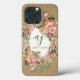 "Elégant Rose Floral Gold Damask Monogramme avec votre nom, iPhone 13 Coque." Elégant bouquet floral vintage encadre votre nom et des initiales monogrammes sur un arrière - plan métallique or, subtil ton sur ton damassé. Créée par Audrey Jeanne Roberts, artiste titulaire d'une licence internationale, copyright.