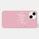 Présentant la douche nuptiale parfaite ou cadeau d'anniversaire - un élégant coque iPhone 14 personnalisé qui est à la fois élégant et fonctionnel. Fabriqué avec un design noir épuré, ce coque customisé présente l'élégante calligraphie de "Mme" et le nom de famille futur de la mariée, accompagnée d'un mignon coeur rose chaud.